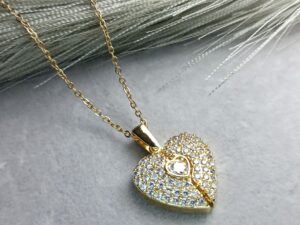 Κολιέ με καρδιά διακοσμημένη λευκά στρασάκια περιμετρικά, που το αγκαλιάζει μια μικρή καρδιά ενα κρούσταλλο, πολυ κόμψο και ιδιαίτερο σχέδιο η καρδιά ανοίγει στα δυο ! Μπορεί να φορεθεί απο το πρωί μέχρι το βραδύ, η κάρδια συμβολίζει την αγάπη για ενα άτομο και την στοργή, είναι ενας πολυ όμορφος τρόπος να εκφράσουμε την αγάπη μας με ενα κολιέ καρδιά. Εδω μπορείτε να το δείτε